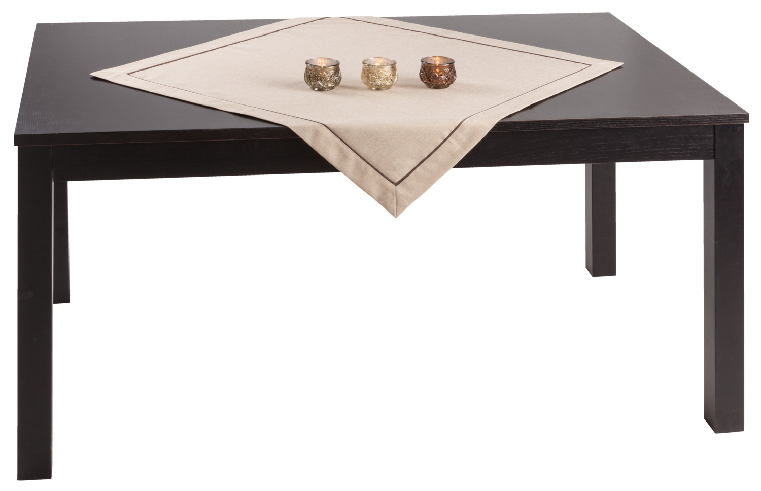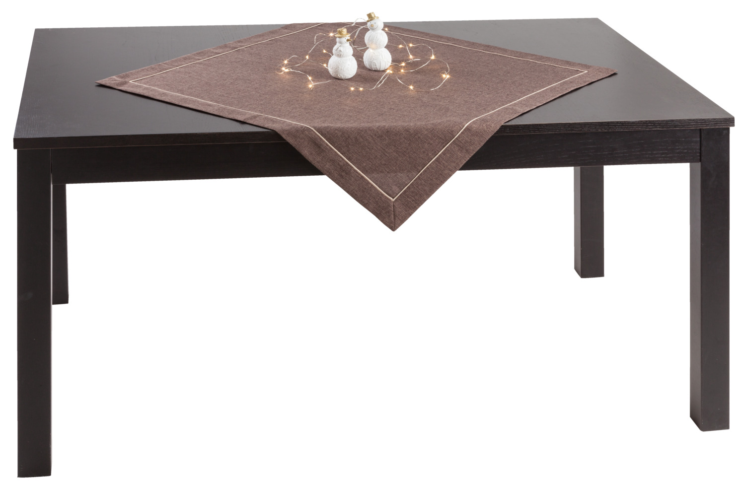 100% polyester. Weight approx. 210 g/m². Table linen with envelope hem. Mottled look with matching piping. Particularly easy to clean and durable. Personalization possible.