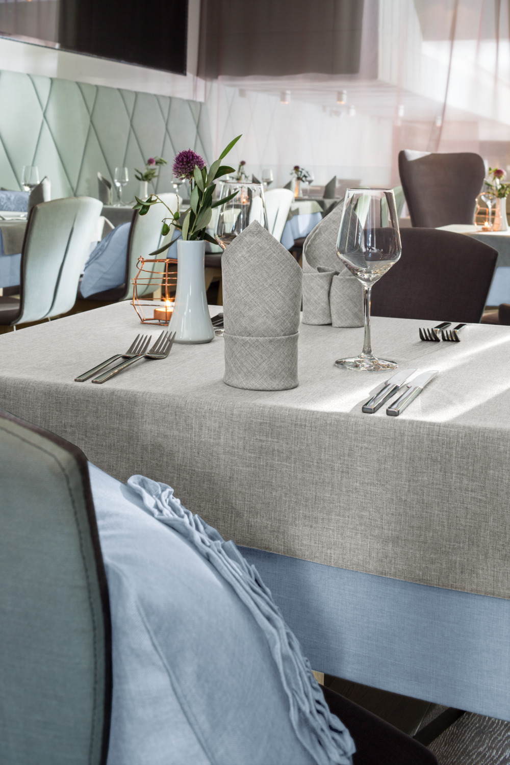 100% polyester. Weight approx. 210 g/m². Easy care table linen in mottled look. High-quality confection with envelope hem. Beautiful structure with natural feel. Robust, durable. Personalization possible. Sewn table linen custom size available upon request. Please note that custom made and special sizes are excluded from exchange.