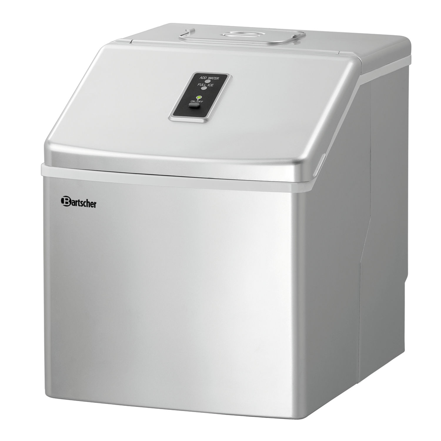 Compact device with plastic housing for the production of ice cubes in two sizes. Produces about 10 kg of ice in 24 hours. Connected load: 150W / 230 V, volume storage tank: 1kg, tank capacity: 1.5l, weight 12.25kg. Coolant R600a, climate class T, incl. control lamp and selector switch for ice cube size. Two years warranty.