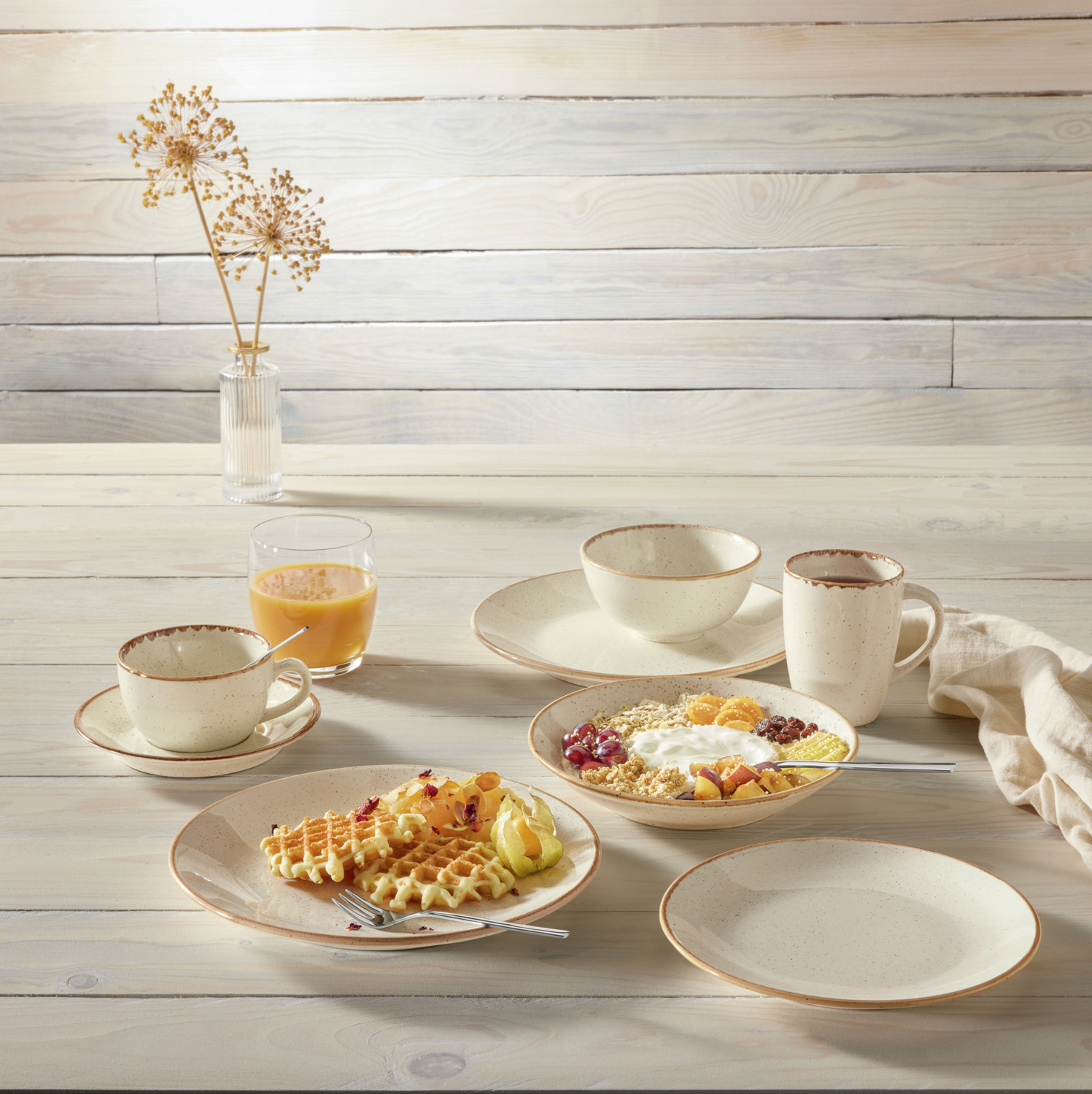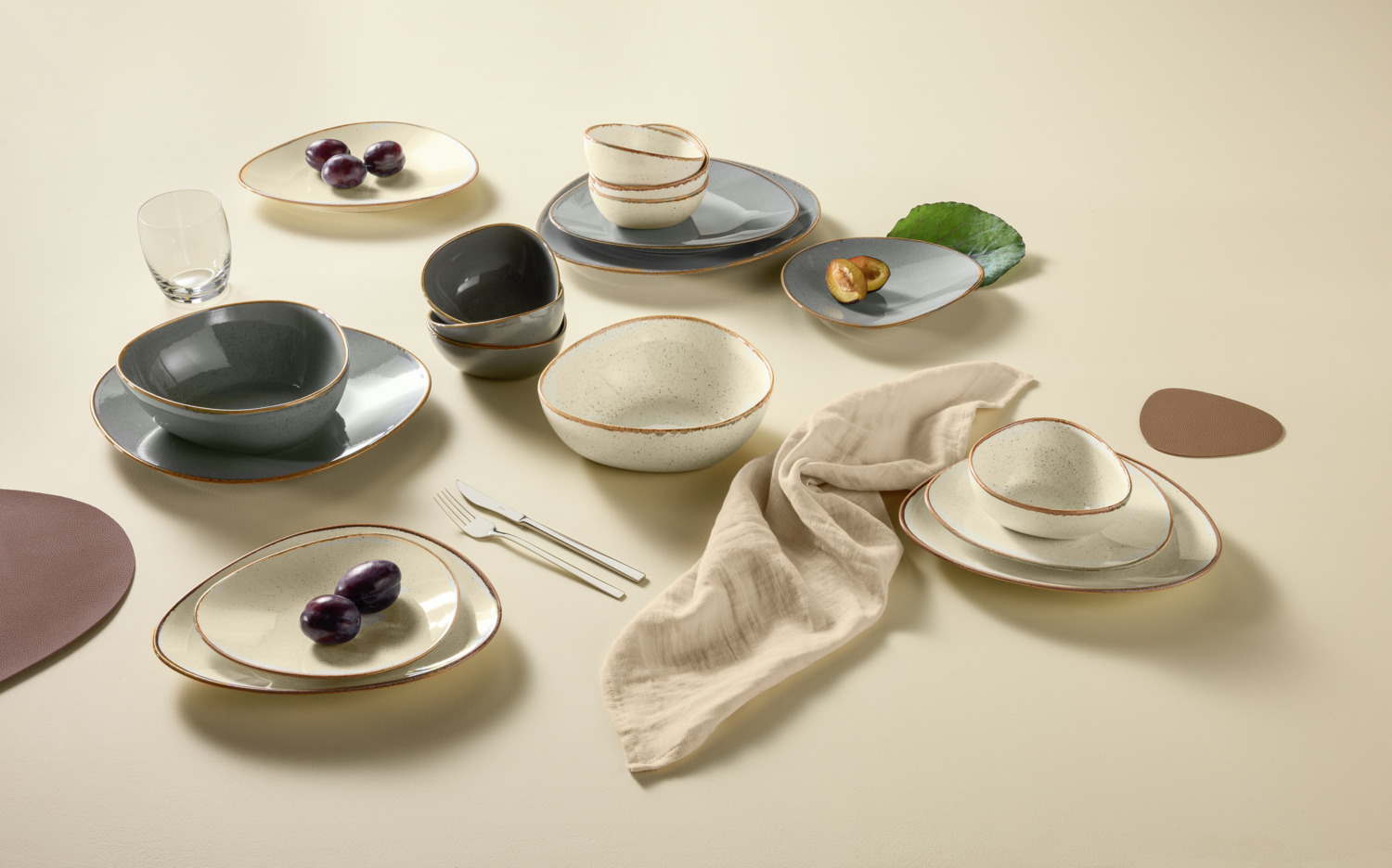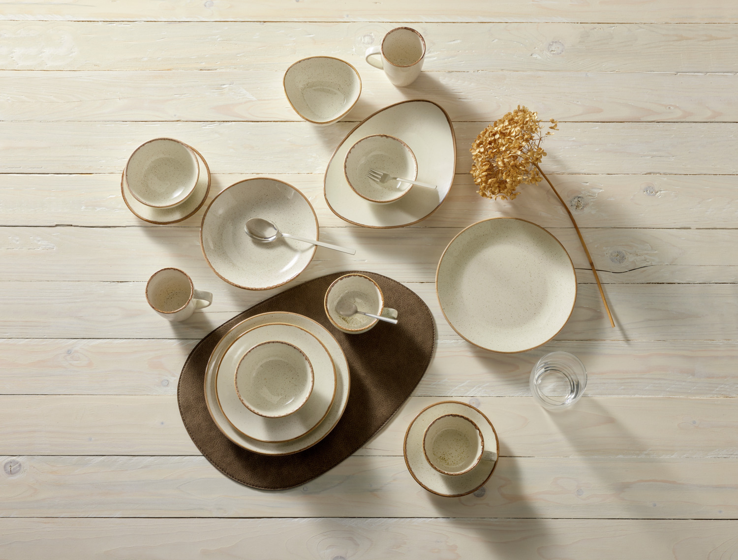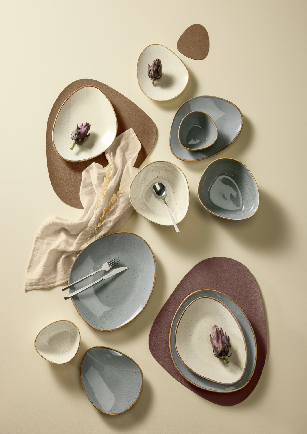 Colored porcelain bowl with ceramic look. With slightly irregular edges in the glaze. Dishwasher safe and microwaveable.