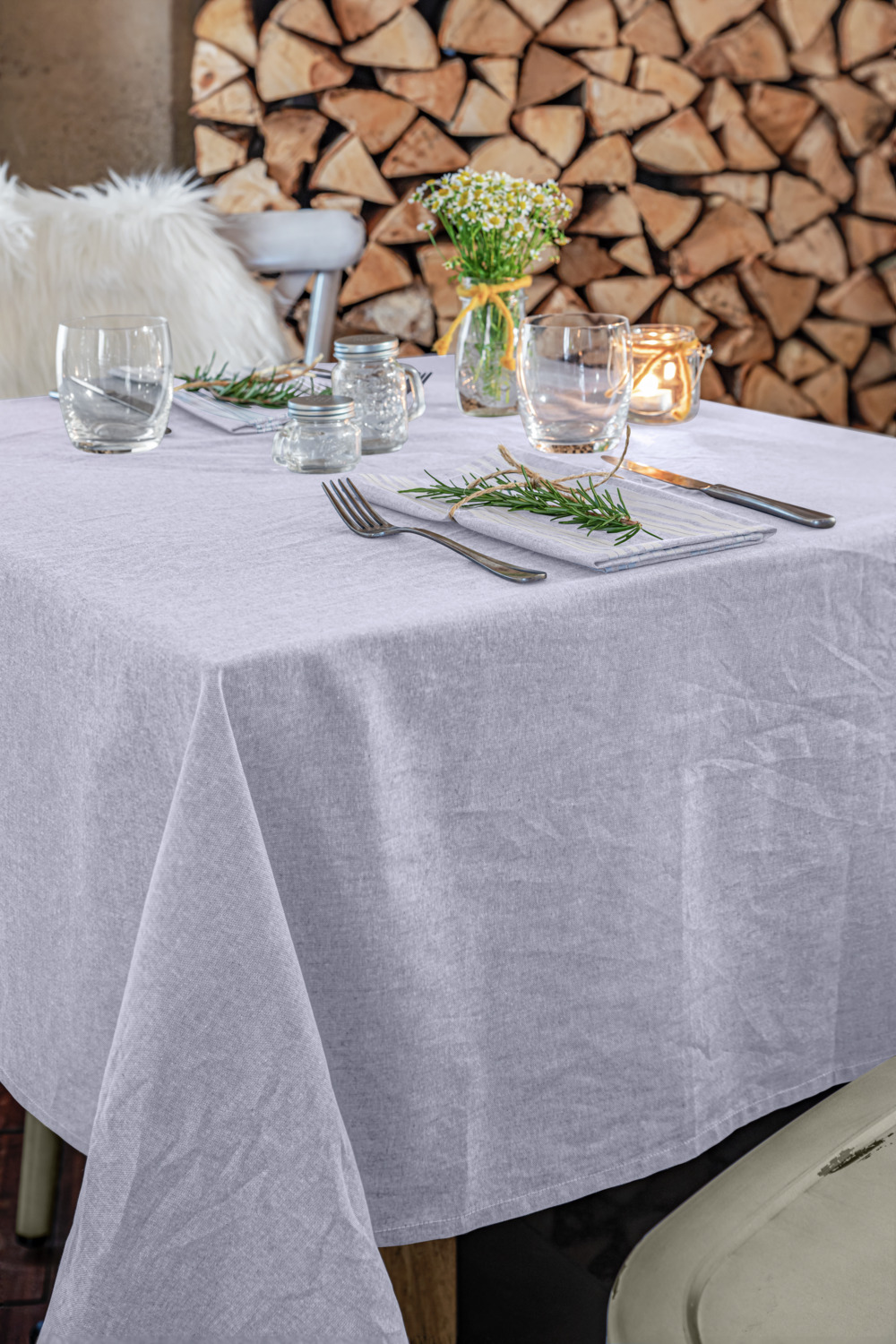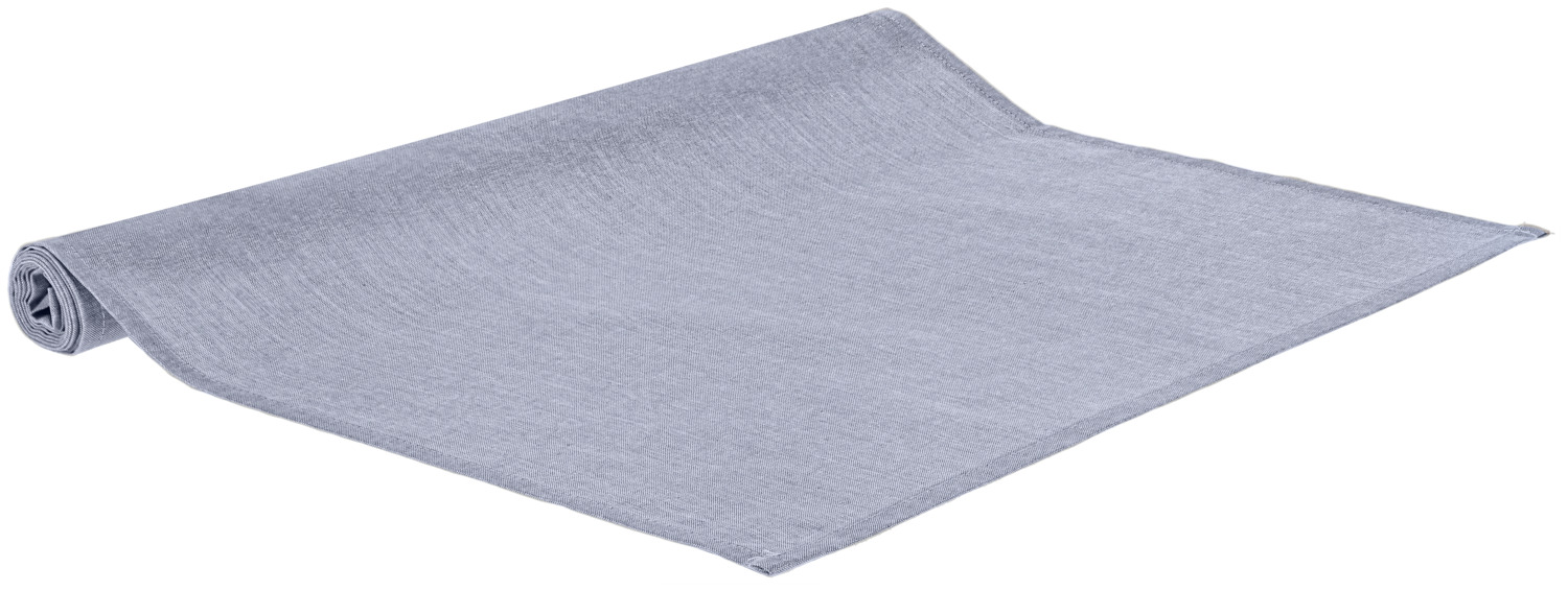 100% cotton. Weight approx. 130 g/m². Table runner in chambray weave for a trendy linen look. Thanks to the yarn dyeing, very colorfast and boil-proof.