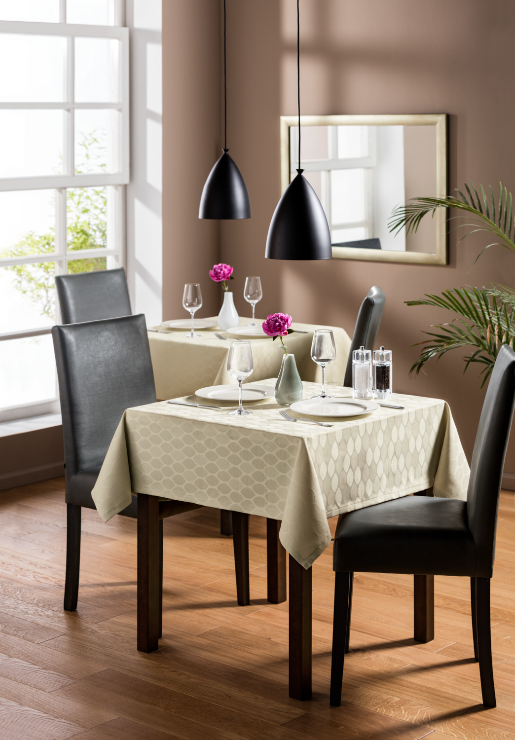 Whether table cloth, table runner or center cloth - with our table linen PIATRA you decide for particularly robust polyester quality, which is ideally suited for indoor and outdoor use. The subtle leave motif in attractive colores mustard, ecru, chocolate and anthracite, is an eye-catcher. Material: 100% polyester, 60°C washable, not chlorine-resistant. Easy to iron. Weight approx. 325 g/sqm. UV resistance 7.