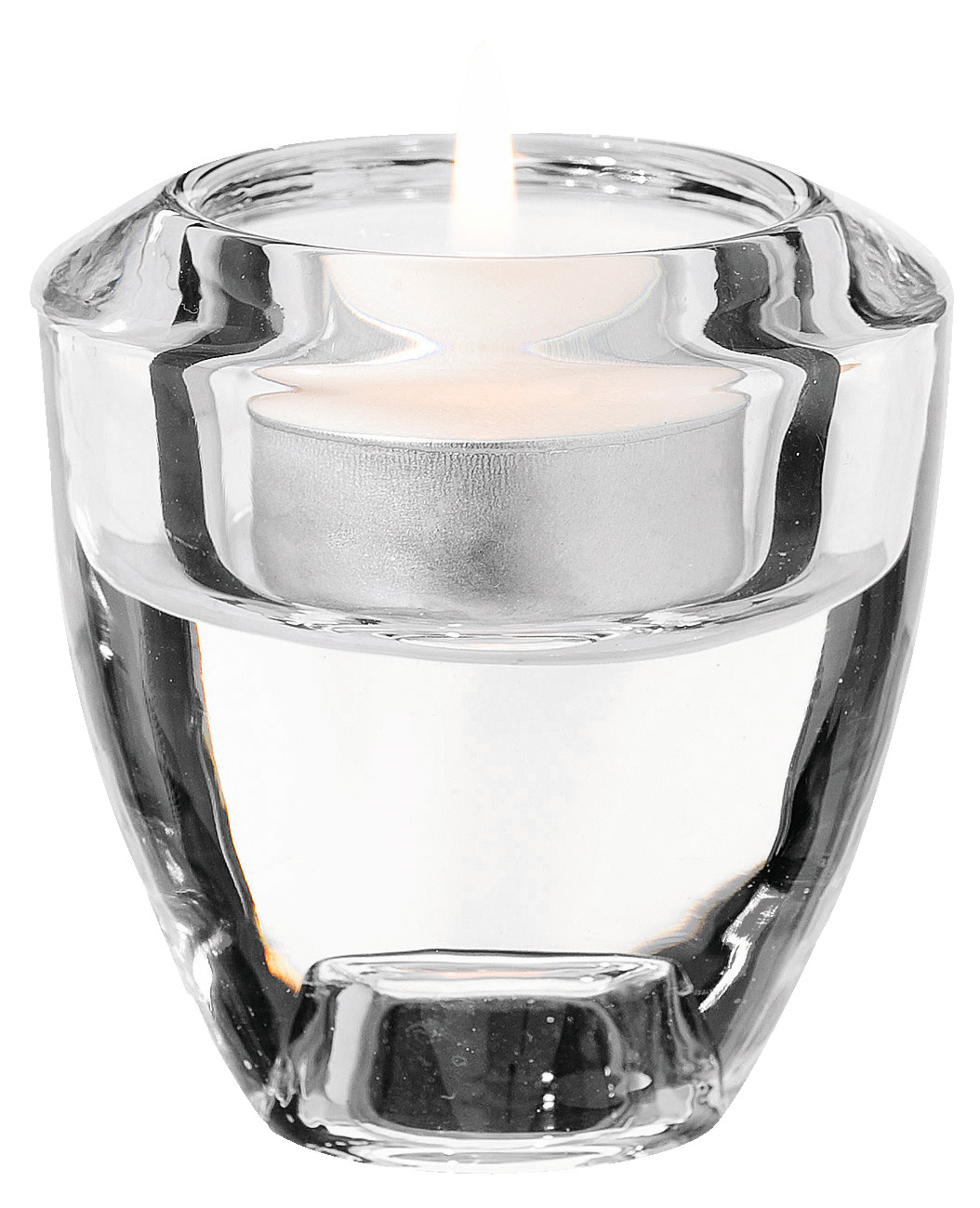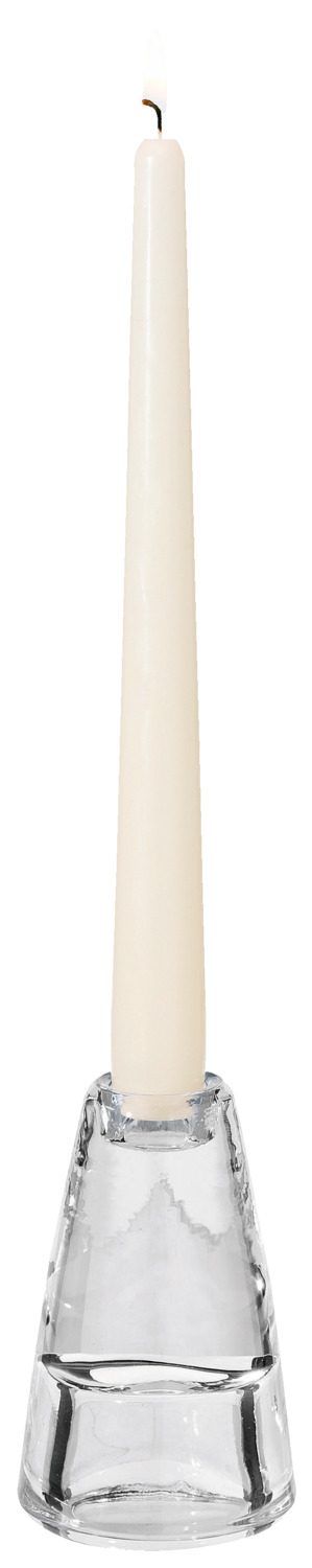 Tealight and candle holder made of glass in a particularly heavy design. Can be used for standard tealights and taper candles by turning. Suitable for dishwasher.