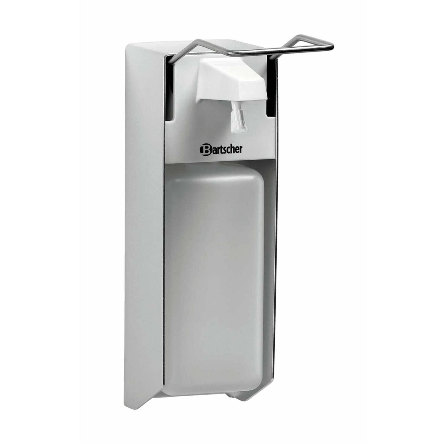 Διανεμητής απολυμαντικού από αλουμίνιο για εύκολη λειτουργία με τον αγκώνα. Περιλαμβάνει βάση τοίχου και διαφανές δοχείο πλήρωσης από πολυπροπυλένιο. Παραδίδεται χωρίς απολυμαντικό.