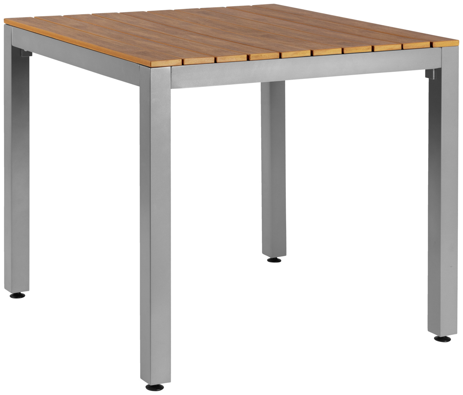 Απλό τραπέζι βεράντας από ελαφρύ βαμμένο αλουμίνιο (Ø πλαισίου: 5 cm, πάχος υλικού 1,5 cm). Επιφάνεια τραπεζιού από ανθεκτικές πλαστικές λάμες πάχους 1,5 cm σε εμφάνιση teak. Με βίδες ισοπέδωσης του δαπέδου. Κατάλληλο για εξωτερική χρήση. Ταιριάζει σε όλα τα εξαρτήματα της σειράς επίπλων Resistance. Η παράδοση είναι αποσυναρμολογημένη, η συναρμολόγηση είναι εύκολη. Σημείωση: Τα τραπέζια εξωτερικού χώρου με πλαστικές λάμες σε εμφάνιση ξύλου έχουν πολλά πλεονεκτήματα σε σχέση με τα τραπέζια με ξύλινες επιφάνειες. Ωστόσο, υπάρχουν ορισμένα σημεία που πρέπει να λάβετε υπόψη όταν χρησιμοποιείτε αυτά τα τραπέζια: Γυαλιά ή άλλα αντικείμενα από γυαλί, όπως τασάκια ή βάζα, μπορεί να προκαλέσουν φαινόμενο καμένου γυαλιού (φαινόμενο μεγεθυντικού φακού) όταν εκτίθενται σε άμεσο ηλιακό φως, το οποίο μπορεί να προκαλέσει ζημιά στην επιφάνεια.