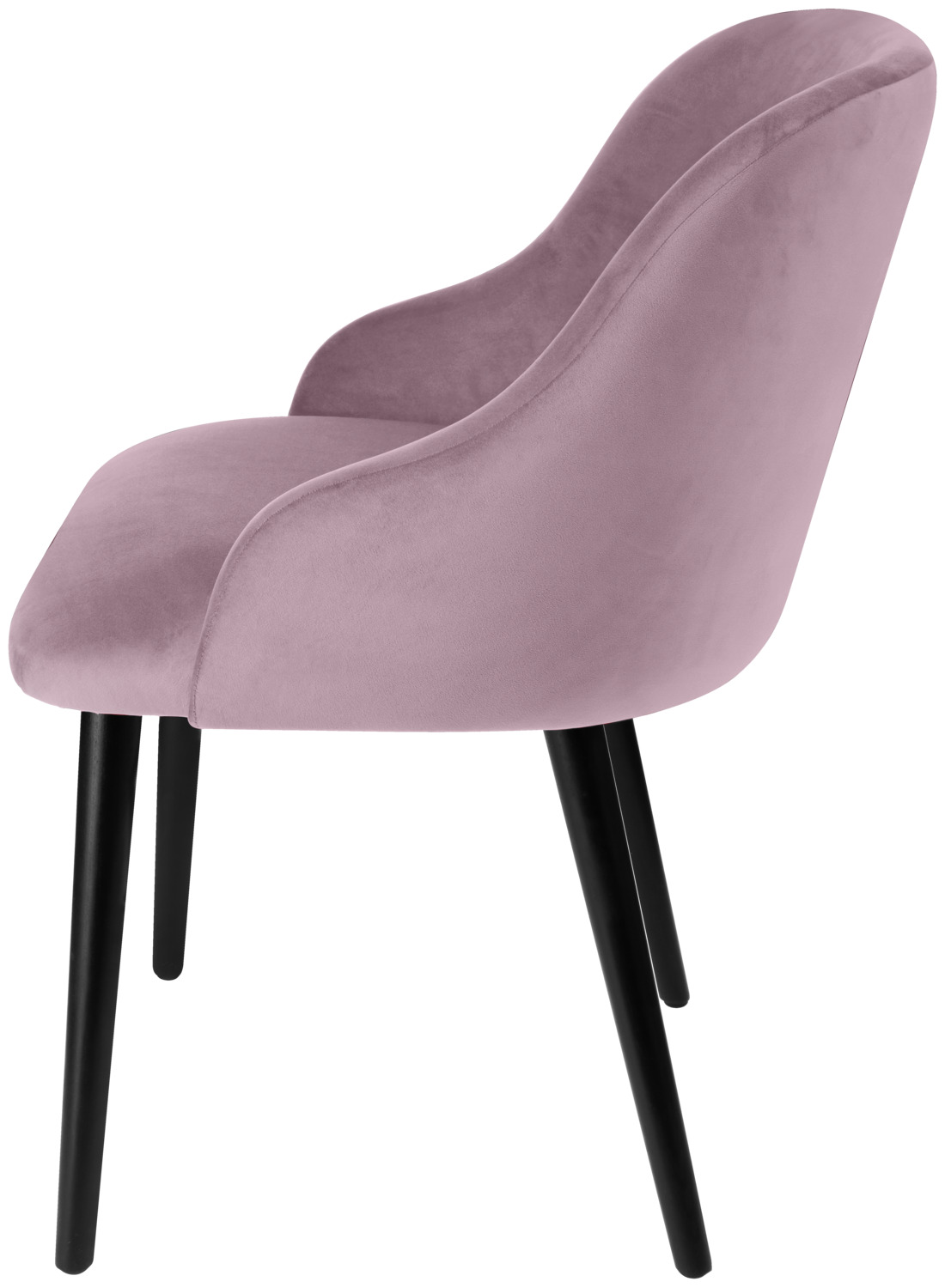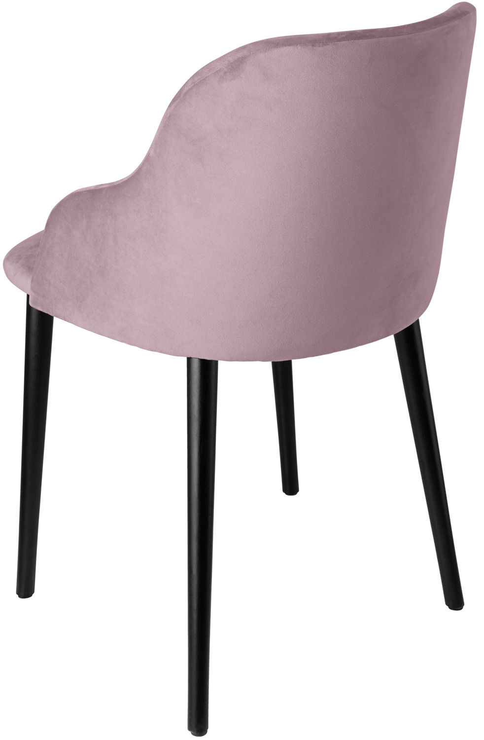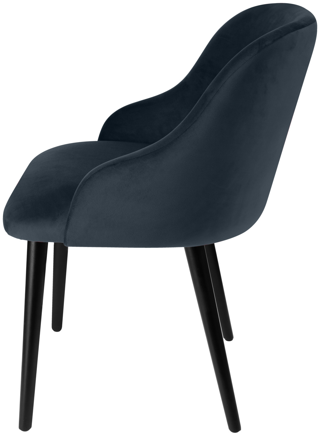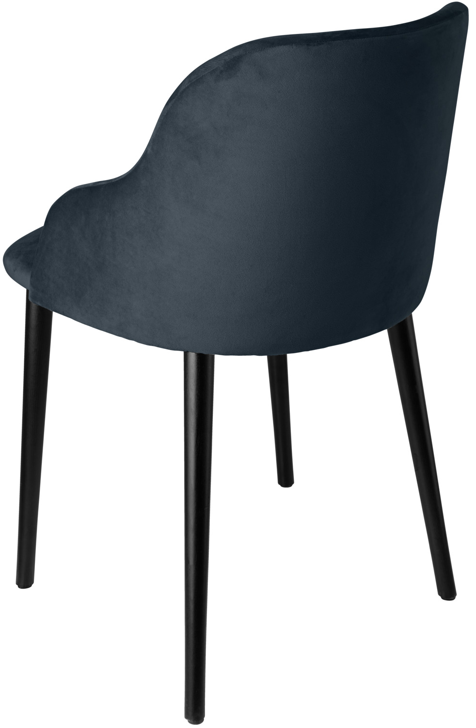 Ergonomically shaped upholstered chair with velvet cover (100% polyester) and black lacquered beech legs. Fire-retardant cover. Plastic glides included. Suitable for indoor use only. Supplied assembled.