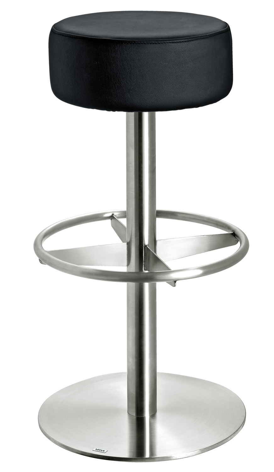 Round barstool seat made of imitation leather cover, upholstered and fire retardant. Suitable for indoor use only. Easy mounting on the Escape swivel base. Mounting material is included with the barstool base.