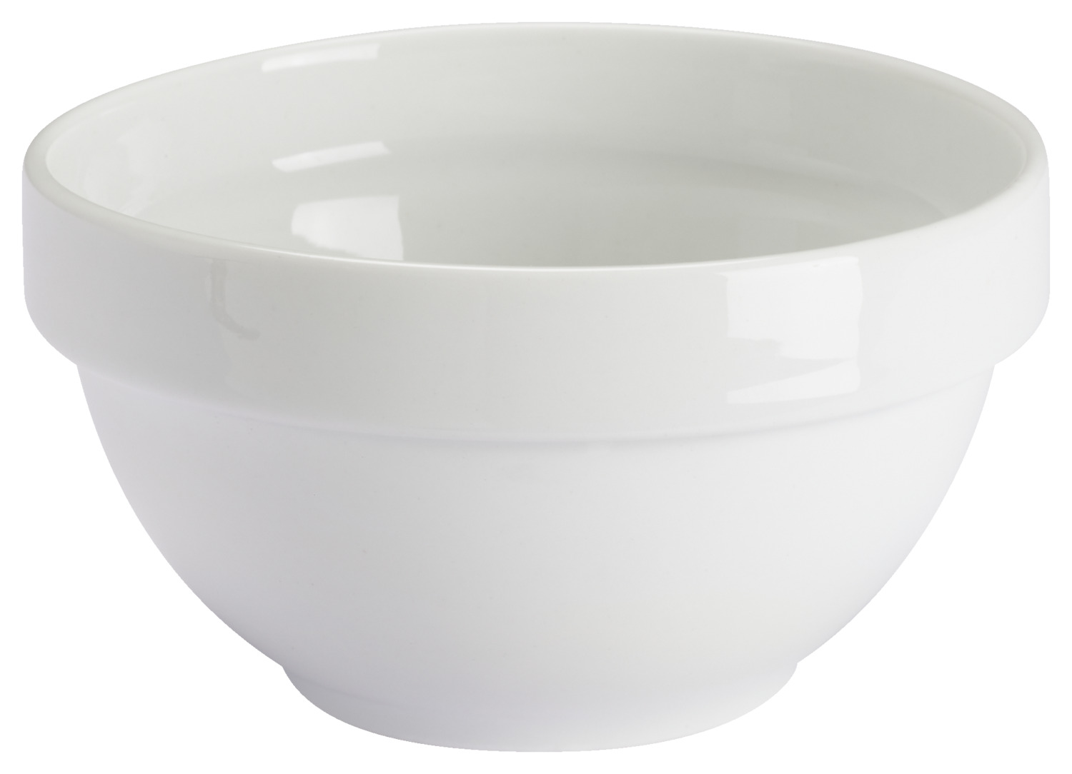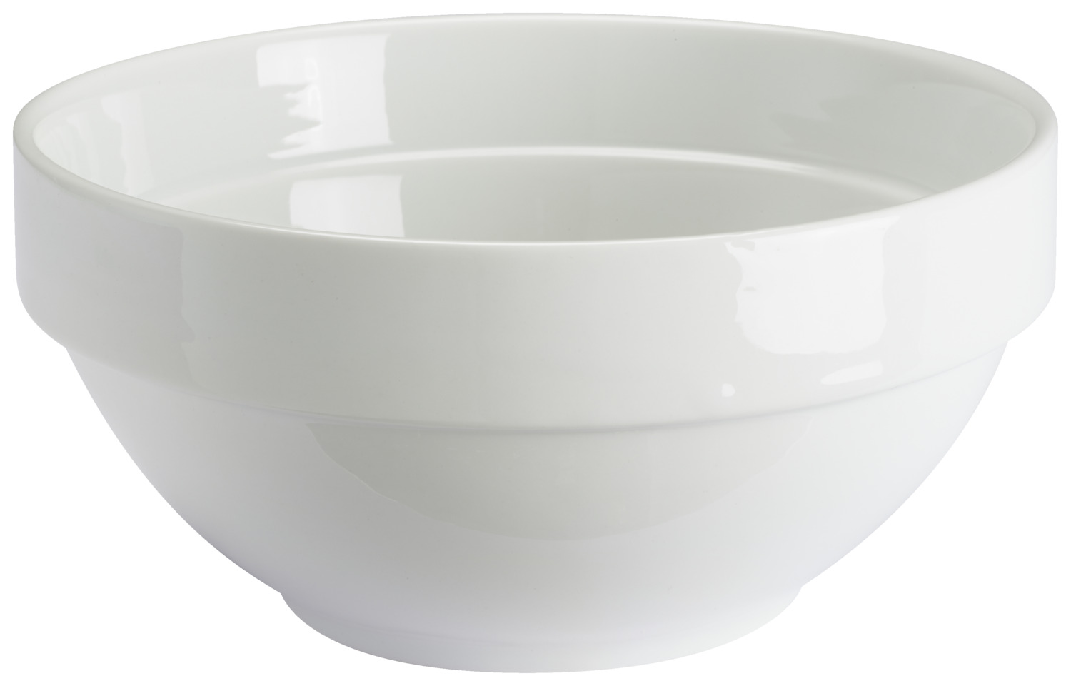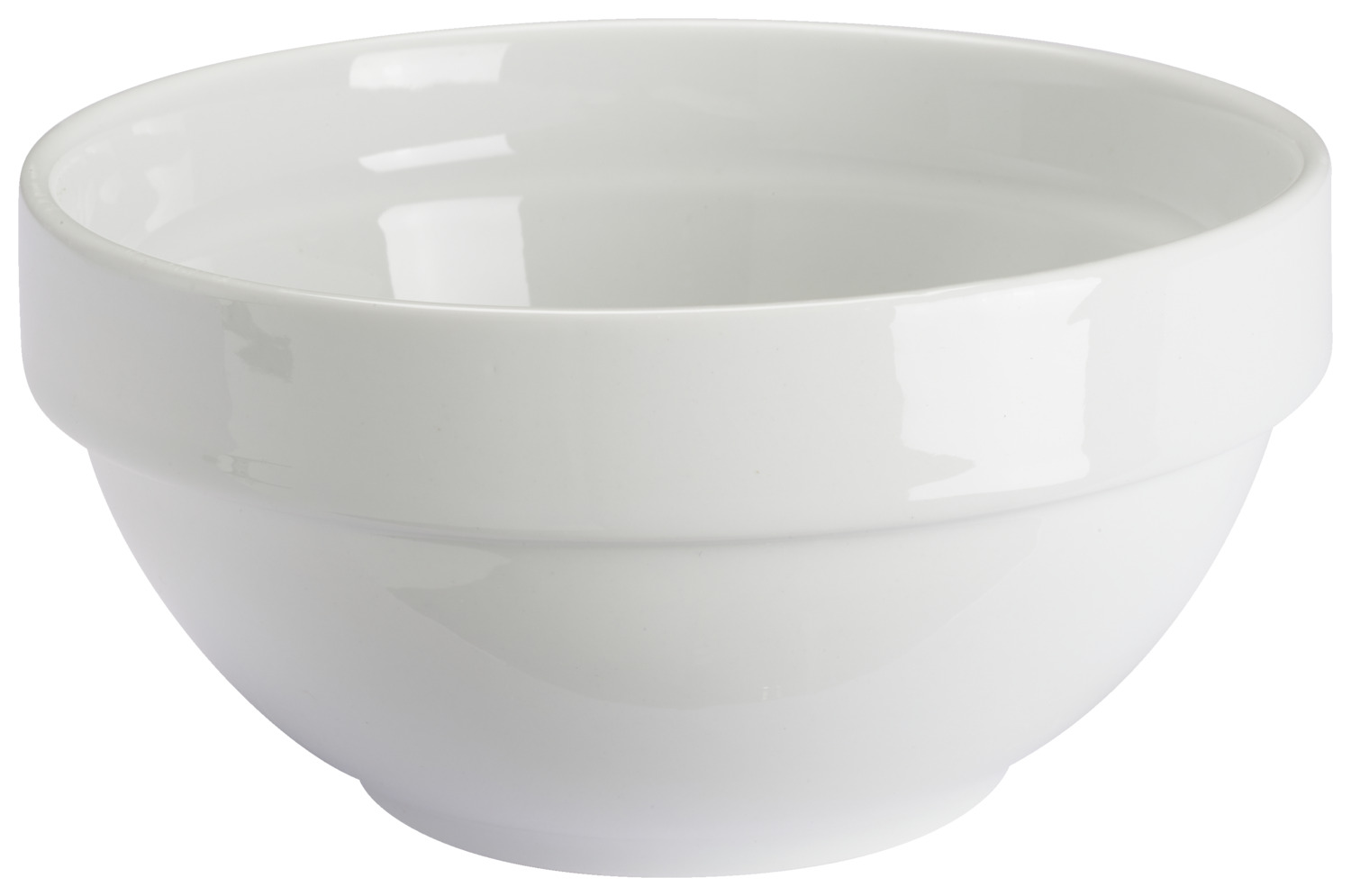Απλό μπωλ από λευκή πορσελάνη σε κλασικό στρογγυλό σχήμα. Στοιβαζόμενο, κατάλληλο για φούρνο μικροκυμάτων και πλυντήριο πιάτων.