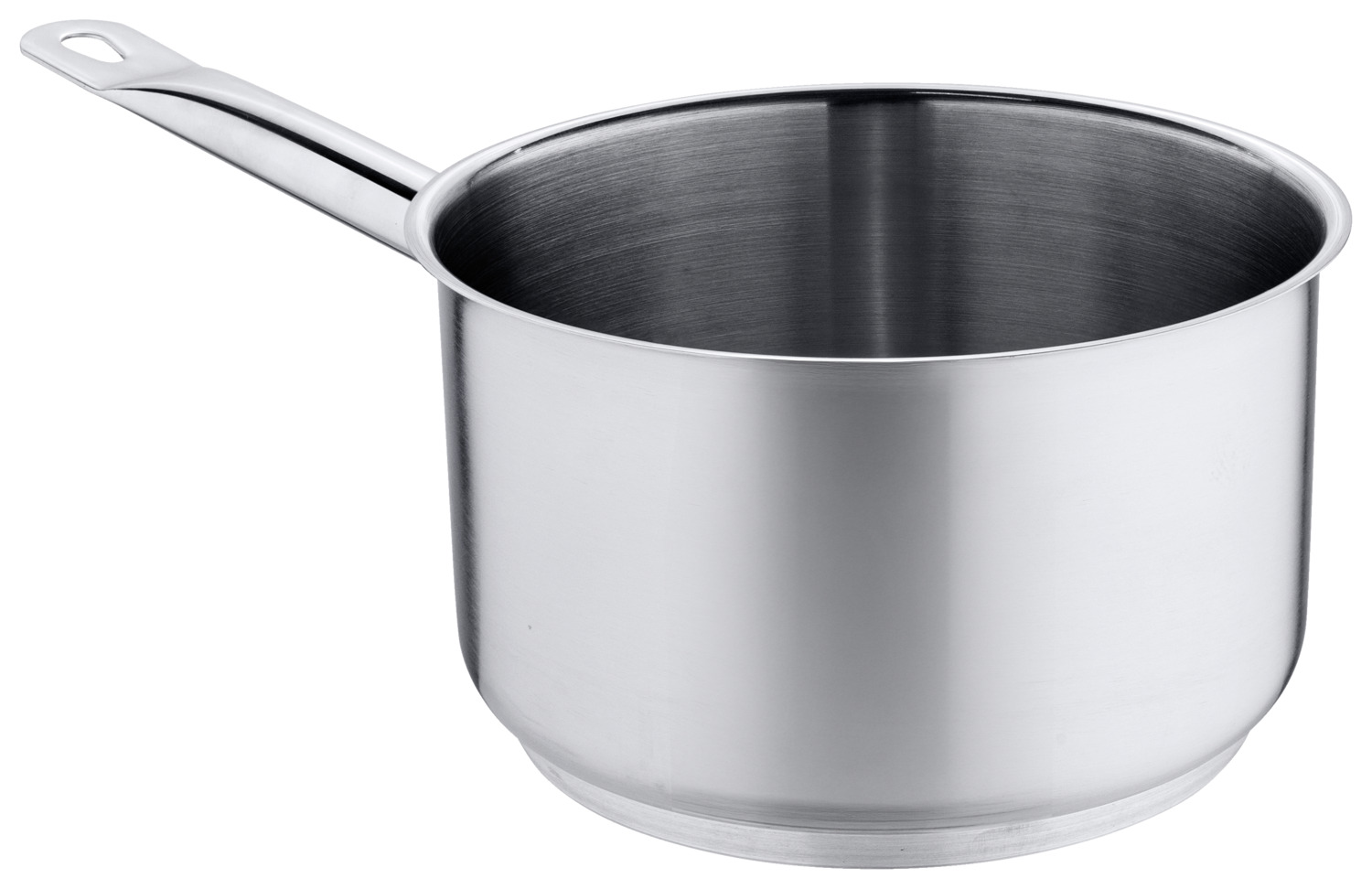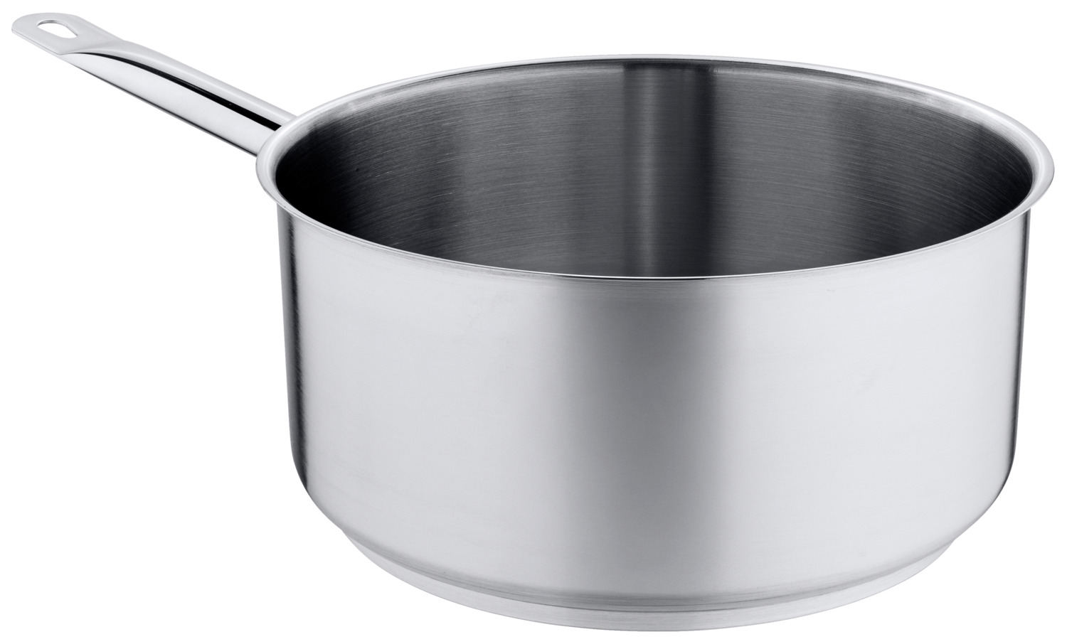 Κατασκευασμένο από ανοξείδωτο χάλυβα 18/10, ματ βουρτσισμένο ανοξείδωτο χάλυβα. Ισχυρό σώμα από ανοξείδωτο χάλυβα με τεχνική σάντουιτς, με πυρήνα αλουμινίου 6 mm. Τοπικά συγκολλημένες, μαζικές ψυχρές λαβές. Με άκρη έκχυσης. Διατίθεται σε διάφορα μεγέθη. Κατάλληλο για όλους τους τύπους εστιών - επίσης για επαγωγικές. Παράδοση χωρίς καπάκι, παρακαλούμε παραγγείλετε ξεχωριστά.