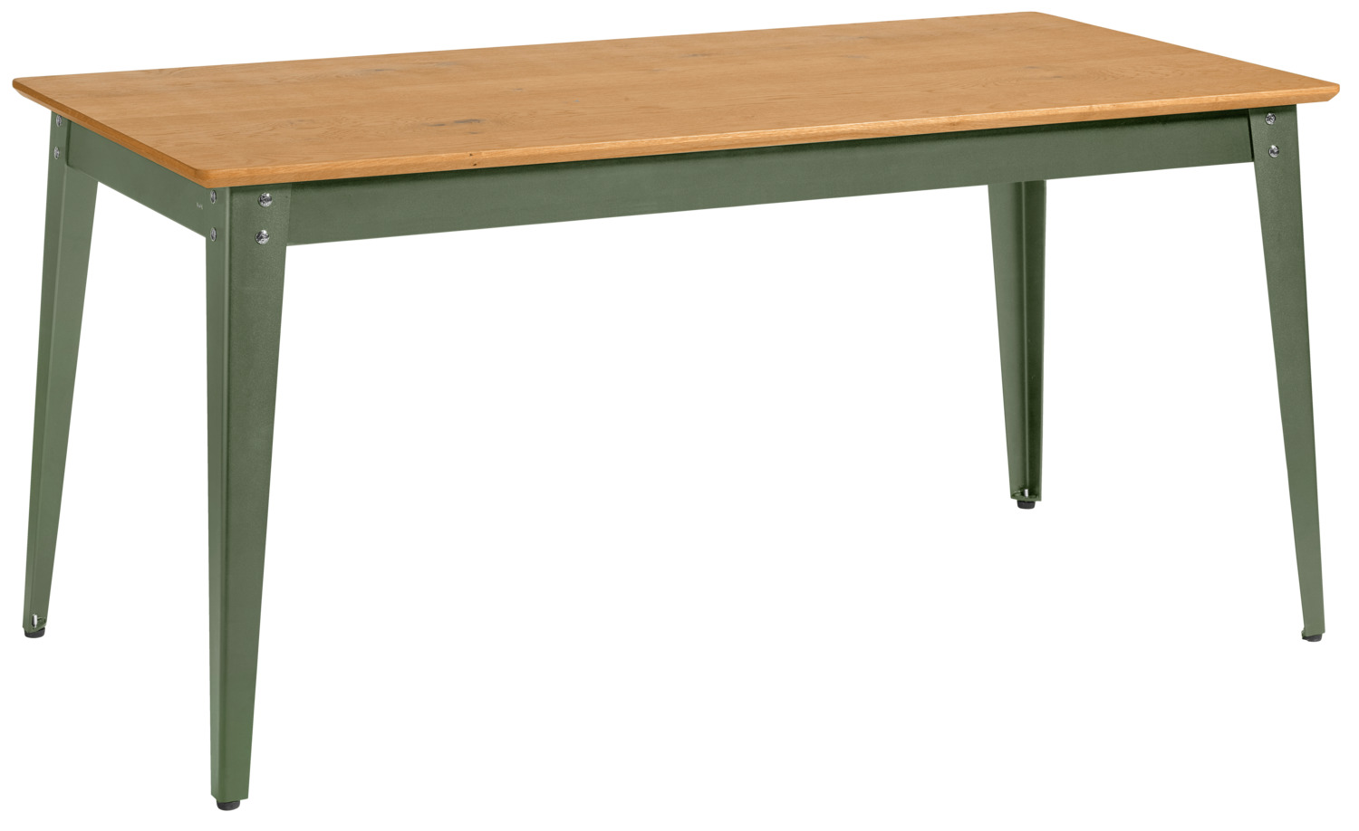 Επιφάνειες τραπεζιού με καπλαμά από πραγματικό ξύλο με κόλλες μασίφ ξύλου σε όψη άγριας βελανιδιάς. Λακαρισμένο και ματ λεκιασμένο. Καπλαμάς και ξύλο βελανιδιάς με πιστοποίηση FSC®. Πάχος τραπεζιού 2,5 εκ. Κατάλληλο μόνο για εσωτερική χρήση. Το υλικό συναρμολόγησης περιλαμβάνεται στις βάσεις του τραπεζιού. Δυνατότητα προσαρμογής.